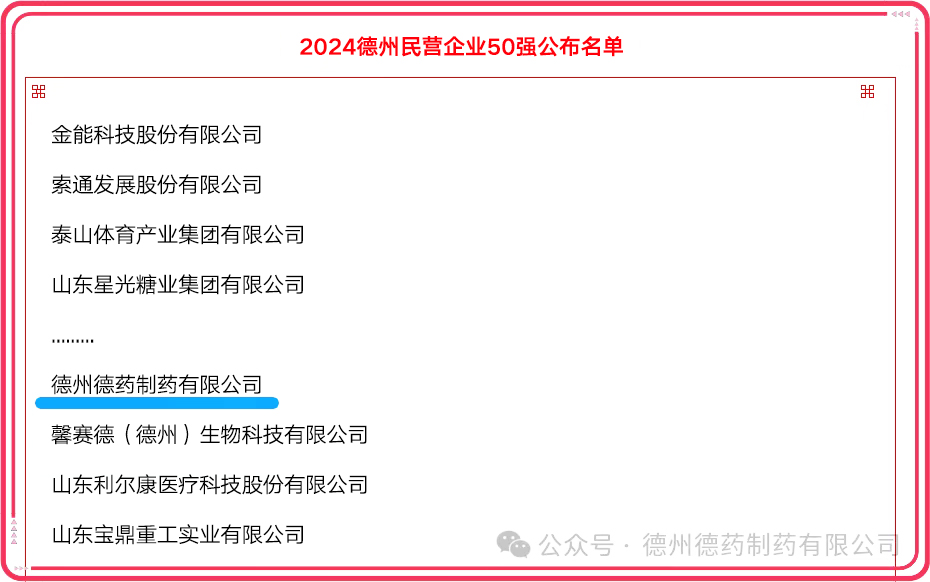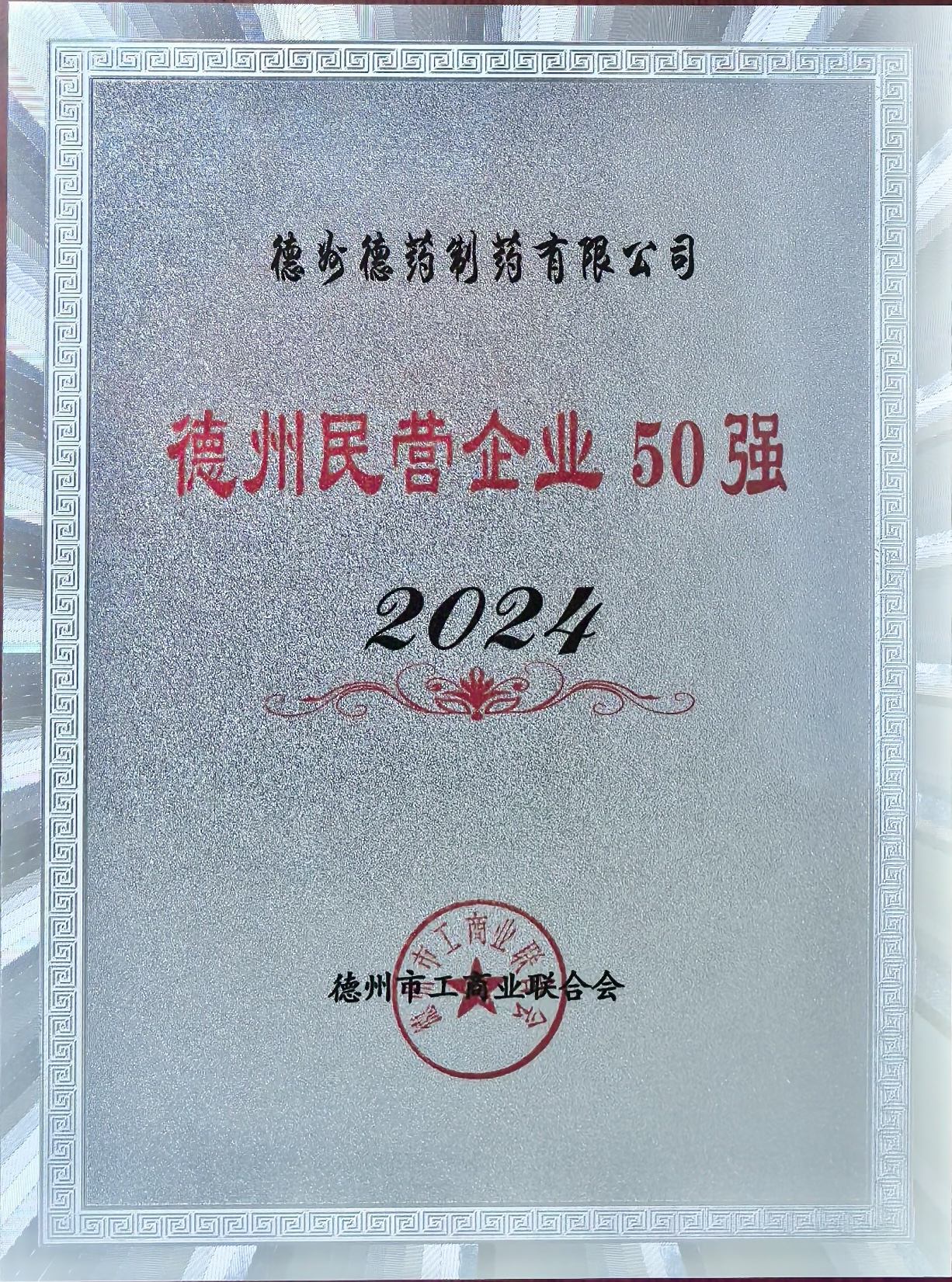 熱烈祝賀德藥制藥有限公司榮獲“2024德州民營企業(yè)50強”稱號